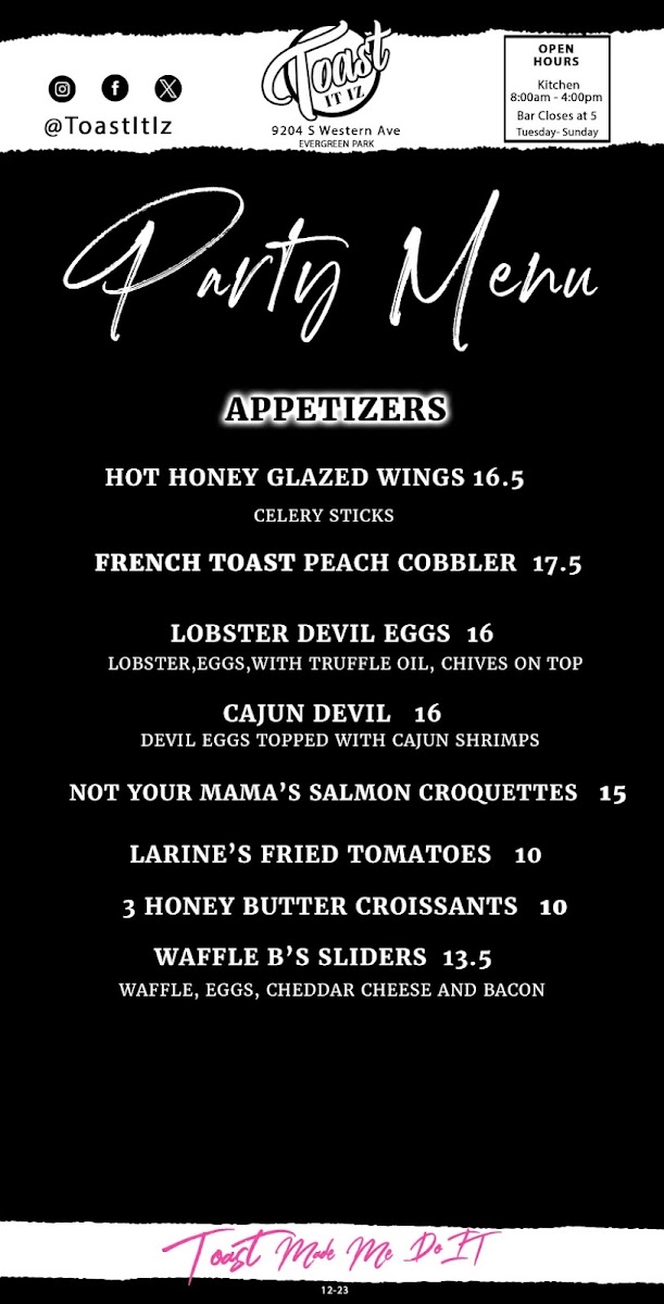Welcome to Toast It IZ, nestled in Evergreen Park, IL. This vibrant eatery promises not just a meal, but a full experience laden with energetic atmosphere, highlighted by live DJs during weekend brunch.